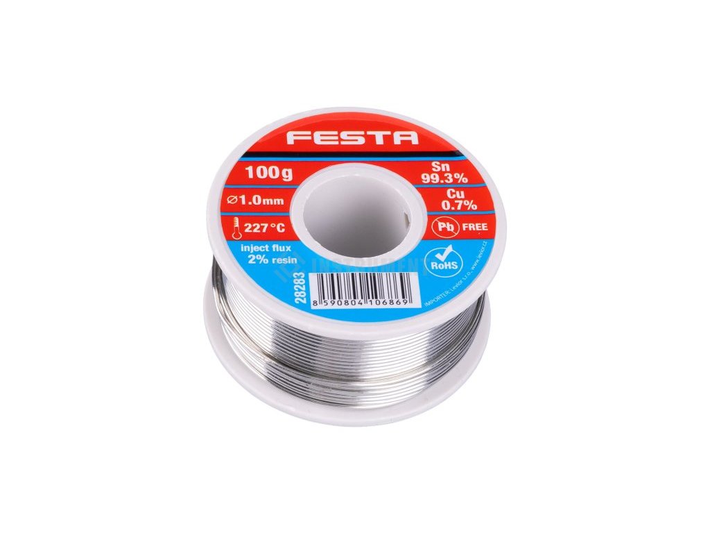 Drôt spájkovací trubičkový Sn 99,3%/0,7% Cu, 1mm, 100g FESTA