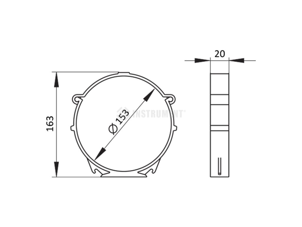 Plastový držiak je určený ku upevneniu okrúhleho potrubia pomocou skrutiek na rovné plochy.