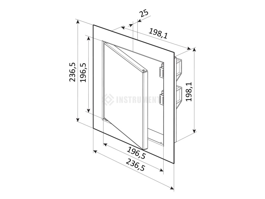 Štvorhranné kovové revízne dvierka s magnetkou DM 200x200mm.