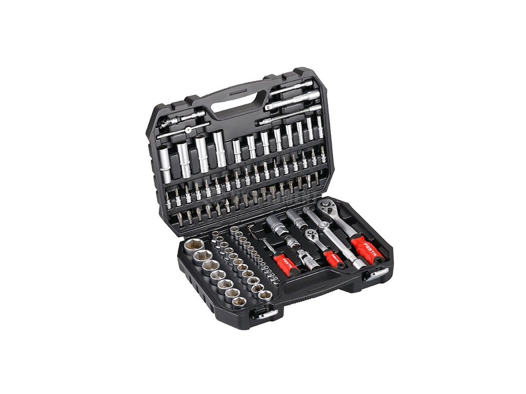 Gola sada 94ks 1/4"+1/2" Festa CrV. Kvalitná gola sada je vhodná vďaka kvalite použitých materiálov a spracovanie v profesionálnej autodielni alebo servisu. 10 rokov záruka. Všetky časti sú vyrobené z vysoko kvalitnej chróm-vanádiovej ocele. Niklová povrchová úprava. Hroty bitov sú zo zliatiny ocele S2. Račne majú jemné delenie 72 zubov, telo račne z CrV ocele, zubový mechanizmus z S2 ocele, ergonomicky tvarovanú rukoväť so zdravotnej nezávadnej gumy. Nový dizajn plastového kufra z primárneho materiálu s kovovými uzávermi a pánty veka.
