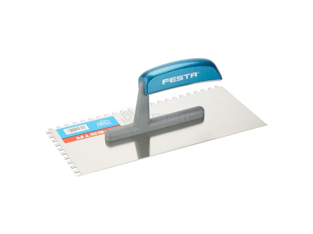 Hladítko nerezové zubové FESTA 280x130 mm zub 6mm, s drevenou rúčkou, tl.plechu 0,8 mm. Používa sa najmä na nanášanie lepidiel pod obklady a dlažby, ďalej potom na nanášanie stierok, štukov, omietok, tmelov a ďalších stavebných hmôt. Hladítko nerezové zubové umožní natiahnuť lepidlo či stavebnú hmotu v pruhoch a výške podľa zuba hladidla. Vďaka pruhom je obklad či dlažba prilepená iba polovicou svojej veľkosti. Pruhy lepidlá sú mäkké, poddajné a umožňujú tak ľahkú manipuláciu (vyrovnanie) s prilepenými dlaždicami.