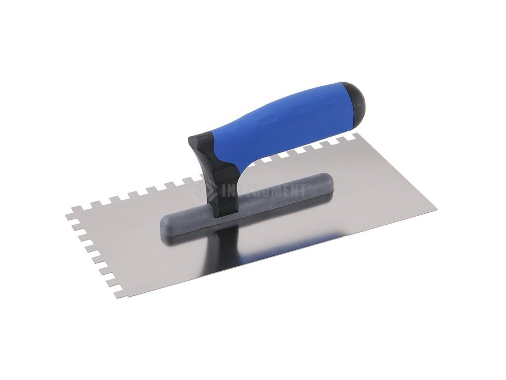Oceľ nerezová, kyseline odolná, hrúbka: 0,7mm, dvojzložková rukoväť (G-11), na podlahy, nanášanie omietok, lepidiel a štukov.