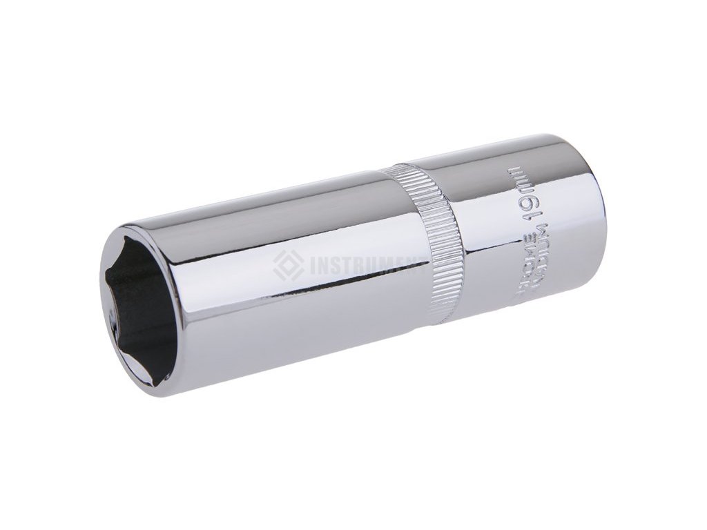 Nástrčná hlavice FESTA predĺžená 1/2" 19mm (orech), vyrobená z chromvanadiové ocele kovaním, podľa DIN3124, ošetrené dvoma vrstvami niklu a jednou vrstvou chrómu. Vhodná do autodielní a do praktického denného náradia. Výhradne pre ručné použitie.