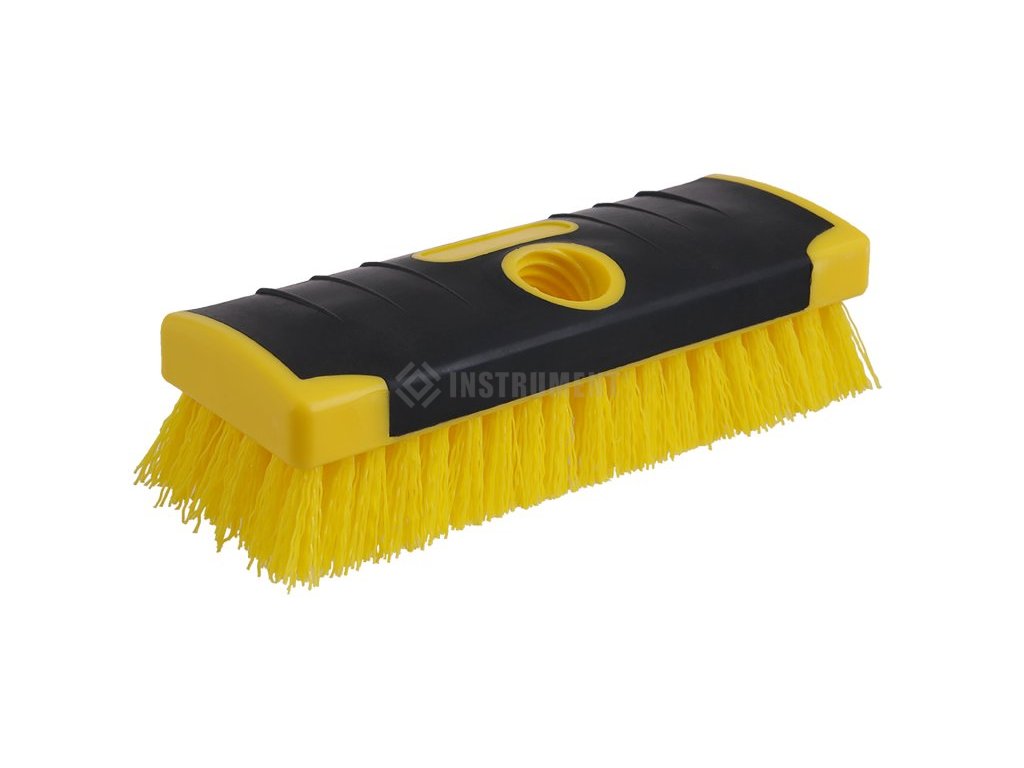 Podlahový nylonový kefa so závitom, možnosť naskrutkovať násadu, nylonový drôt, plastové telo s pogumovaním. Rozmer: 6 x 19 cm.