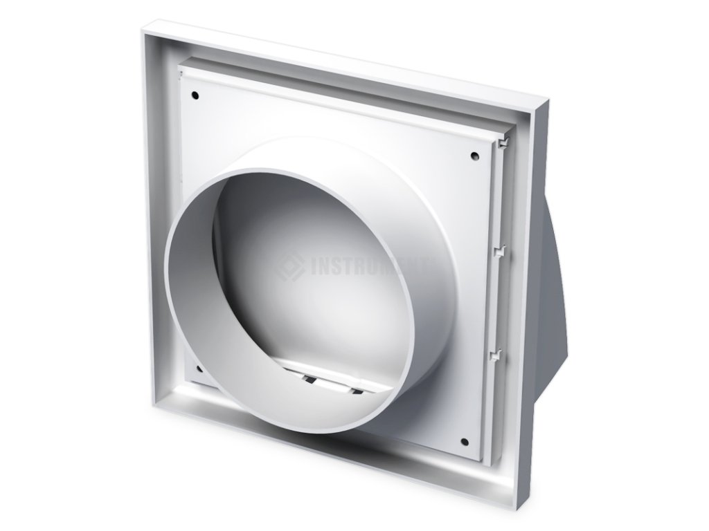 Štvorhranná plastová gravitačná klapka s nadstavcom, 154 x 154 mm, Ø 100 mm.