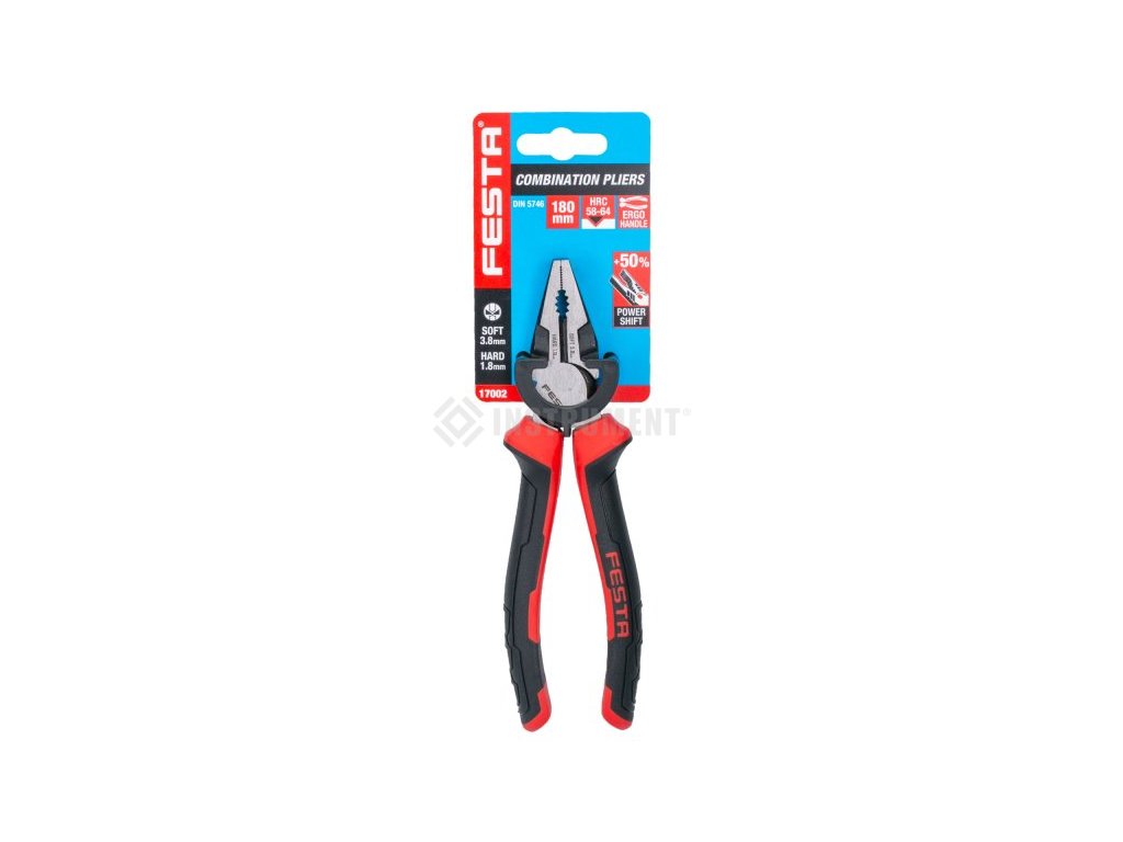 Vysoko kvalitné kliešte kombinované 180mm FESTA. Antikorózna úprava. Ergonomické dvojzložkové zmäkčené rukoväte. 30% väčší kontakt s rukoväťou znižuje potrebnú silu. Výrobca je certifikovaný podľa ISO 90001.
