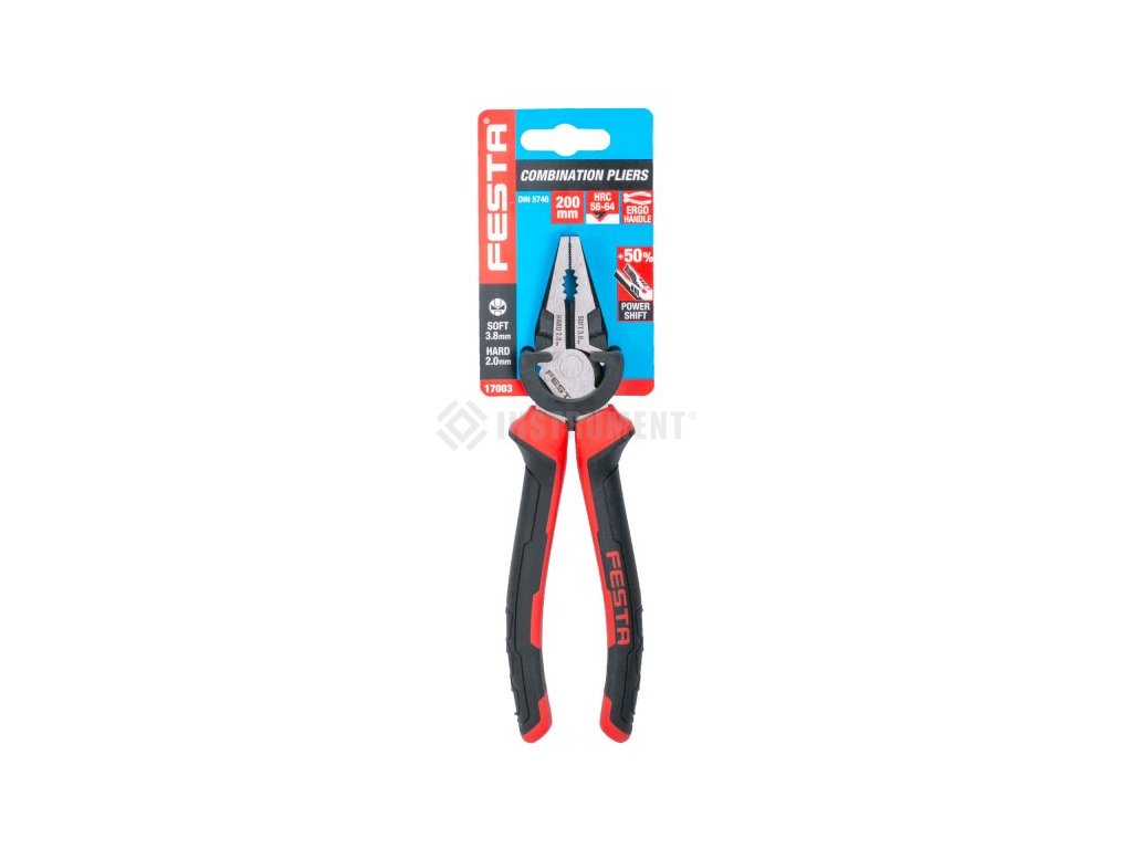 Vysoko kvalitné kliešte kombinované 200mm FESTA. Antikorózna úprava. Ergonomické dvojzložkové zmäkčené rukoväte. 30% väčší kontakt s rukoväťou znižuje potrebnú silu. Výrobca je certifikovaný podľa ISO 90001.