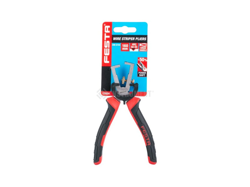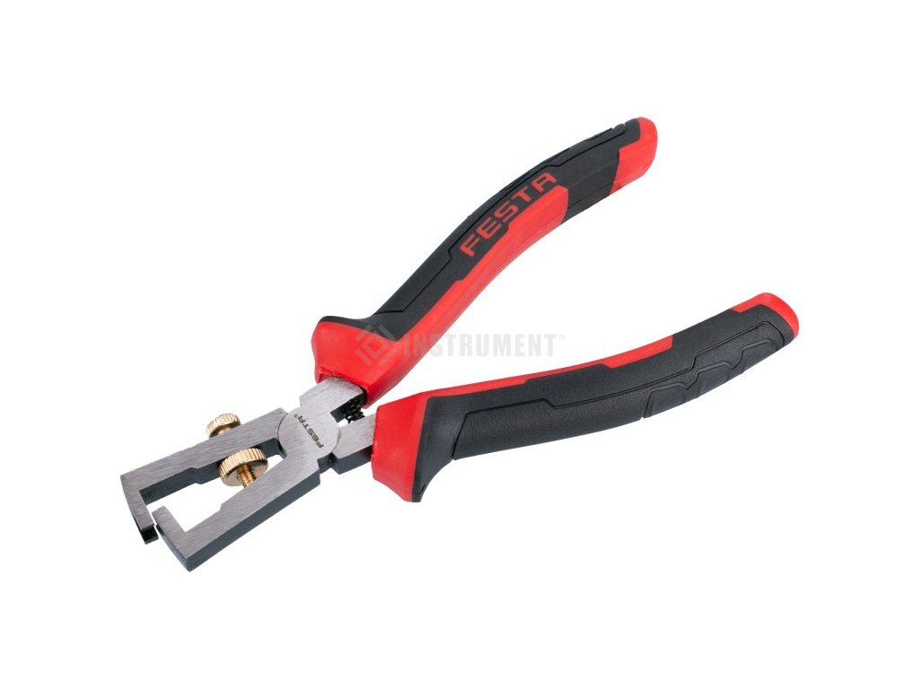 FESTA 160 mm odizolovacie kliešte, nastaviteľné čeľuste pre ľahké odizolovanie drôtov, ergonomické rukoväte certifikované na prácu do 1000 V, výrobca je certifikovaný podľa ISO 9001.