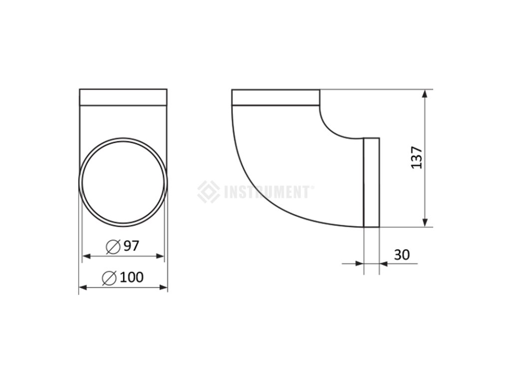 Koleno pre kruhové potrubie, nasadzuje sa do rúrky, kompatibilné so vzduchovodmi a ventilátormi daného rozmeru.