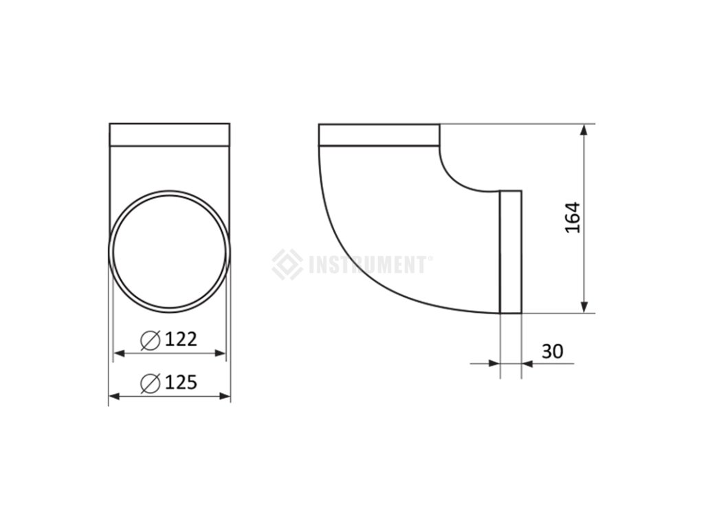 Koleno pre kruhové potrubie, nasadzuje sa do rúrky, kompatibilné so vzduchovodmi a ventilátormi daného rozmeru.