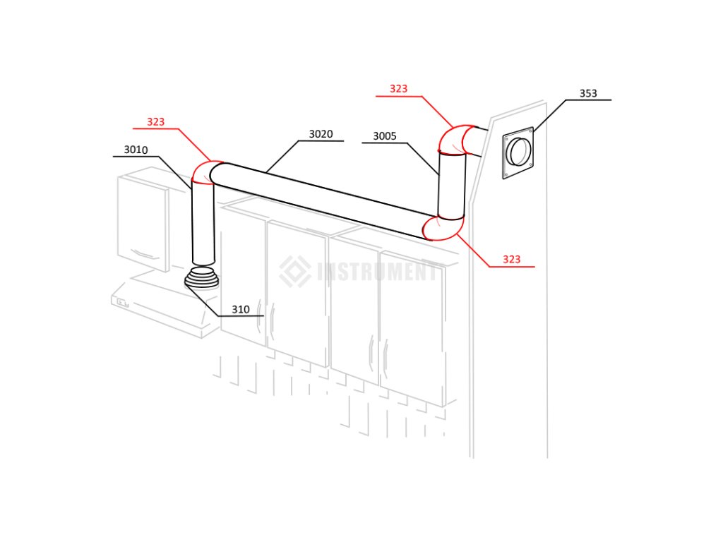 Koleno pre kruhové potrubie, nasadzuje sa do rúrky, kompatibilné so vzduchovodmi a ventilátormi daného rozmeru.