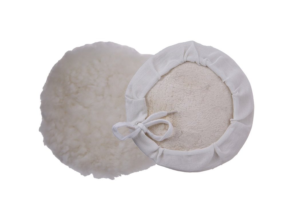 Leštiaci kotúč 150mm, materiál: 40% ovčia vlna / 60% syntetické vlákno, zaviazanie na šnúrku, pre leštenie povrchov pre dosiahnutie vysokého lesku.