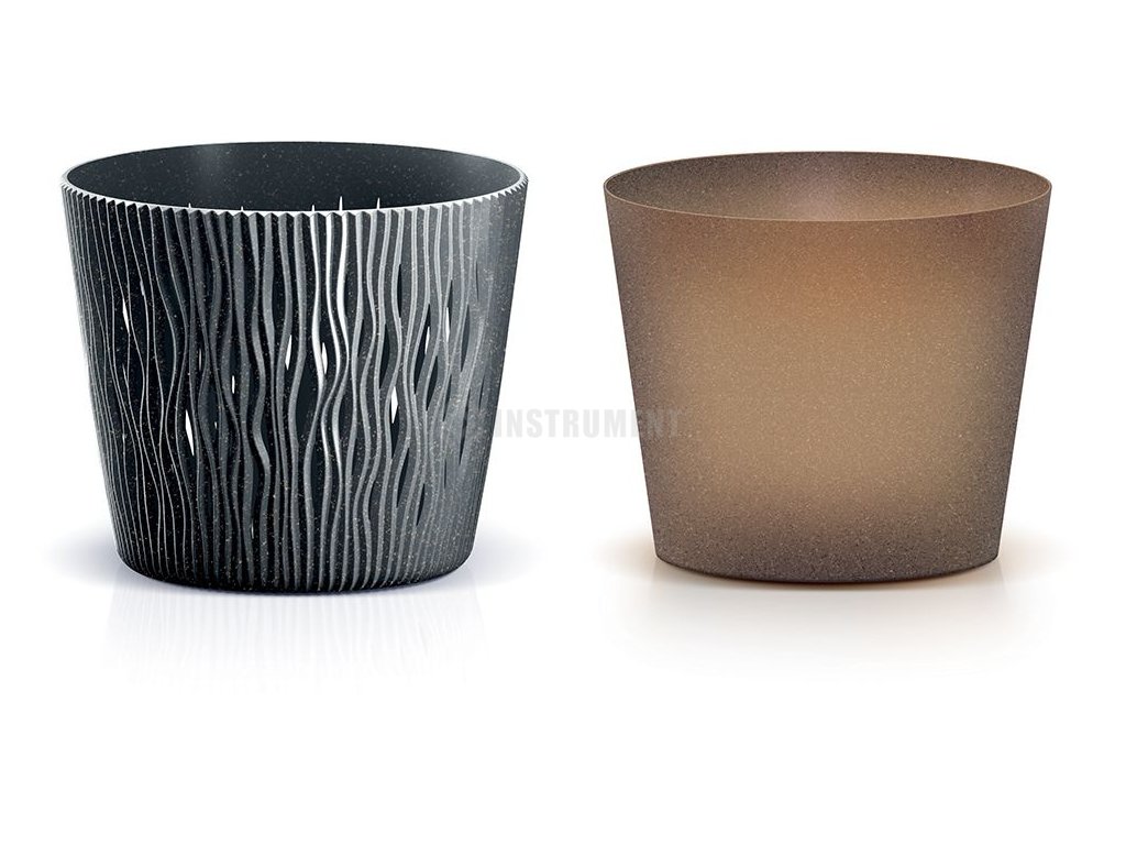 Okrúhle kvetináče z rodiny SANDY sú inšpirované ručne tvarovanou tradičnou keramikou. Hra svetiel na mimoriadne efektných drážkach im dodáva dekoratívny rozmer.