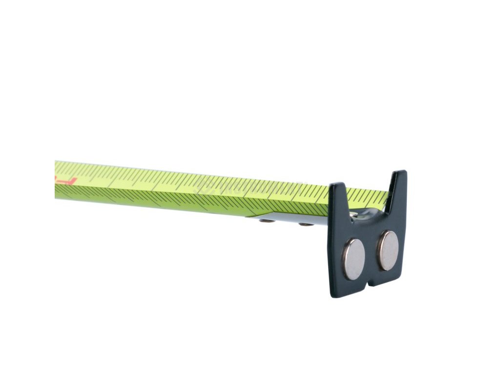 Kvalitný zvinovací meter, kalená páska, dobre čitateľná stupnica, EEC certifikát - meter vhodný na kalibráciu, puzdro metra vyrobené z ABS plastu s gumovou ochranou - vyššia odolnosť proti poškodeniu pri nárazoch a lepšia stabilita pri manipulácii s meradlom, 3 brzdy - dve přibržďovací, doraz pásiky z mäkčené gumy, magnetická koncovka pásky voľne uložené pre meranie vonkajších i vnútorných rozmerov, pútko, klip na opasok, balené na blistri.