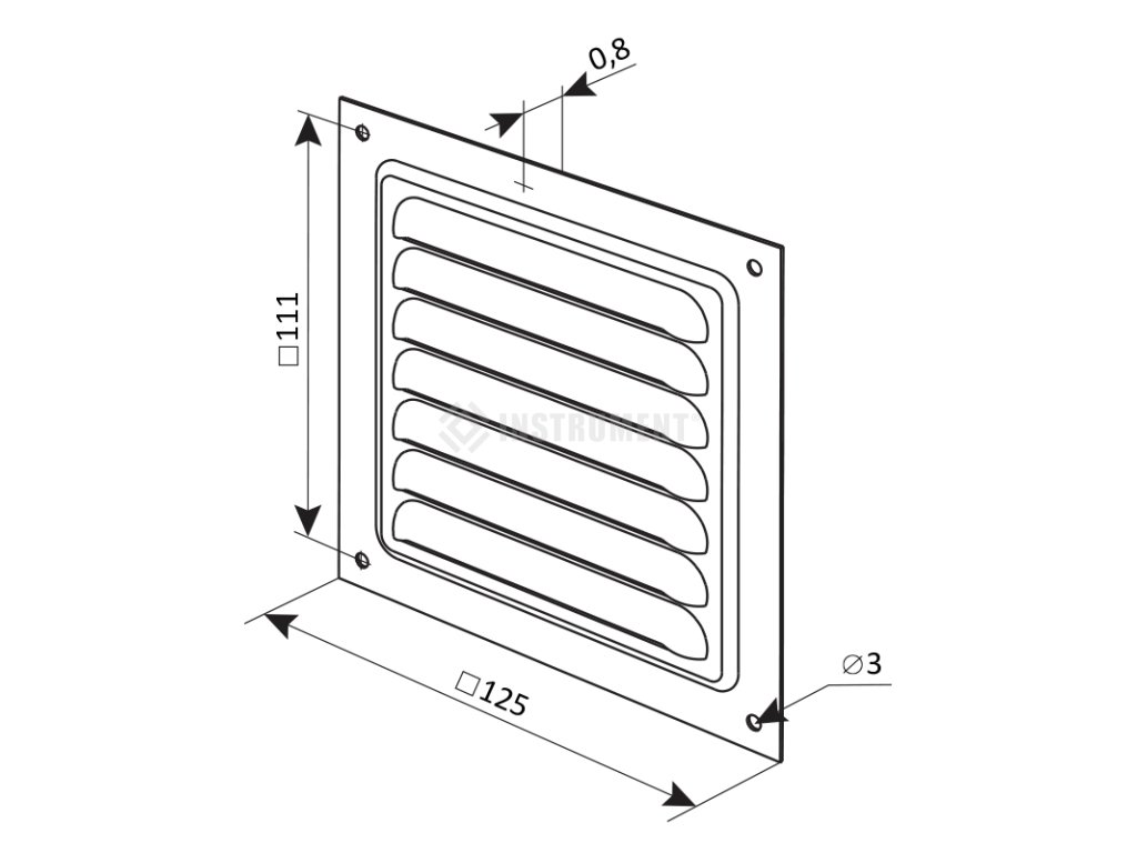Kombinovaná mriežka 125x125mm, biela farba, pre kombináciu vetrania a nasávania. Ventilačná mriežka s pevnými sklonenými horizontálnymi žalúziami. Pre priemyselné, obchodné, domáce vetranie, vykurovanie a klimatizáciu. Pre vnútornu a vonkajšiu montáž. Uchytenie pomocou skrutiek na omietku. Odolná voči nepriaznivým atmosférickým vplyvom a teplote, jednoduchosť a pohodlie inštalácie, ľahké čistenie. Kovová biela mriežka je vybavená sieťkou proti hmyzu.