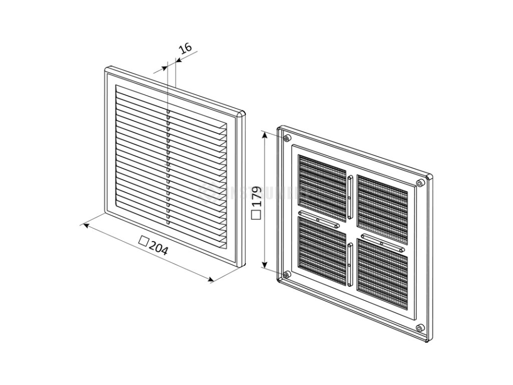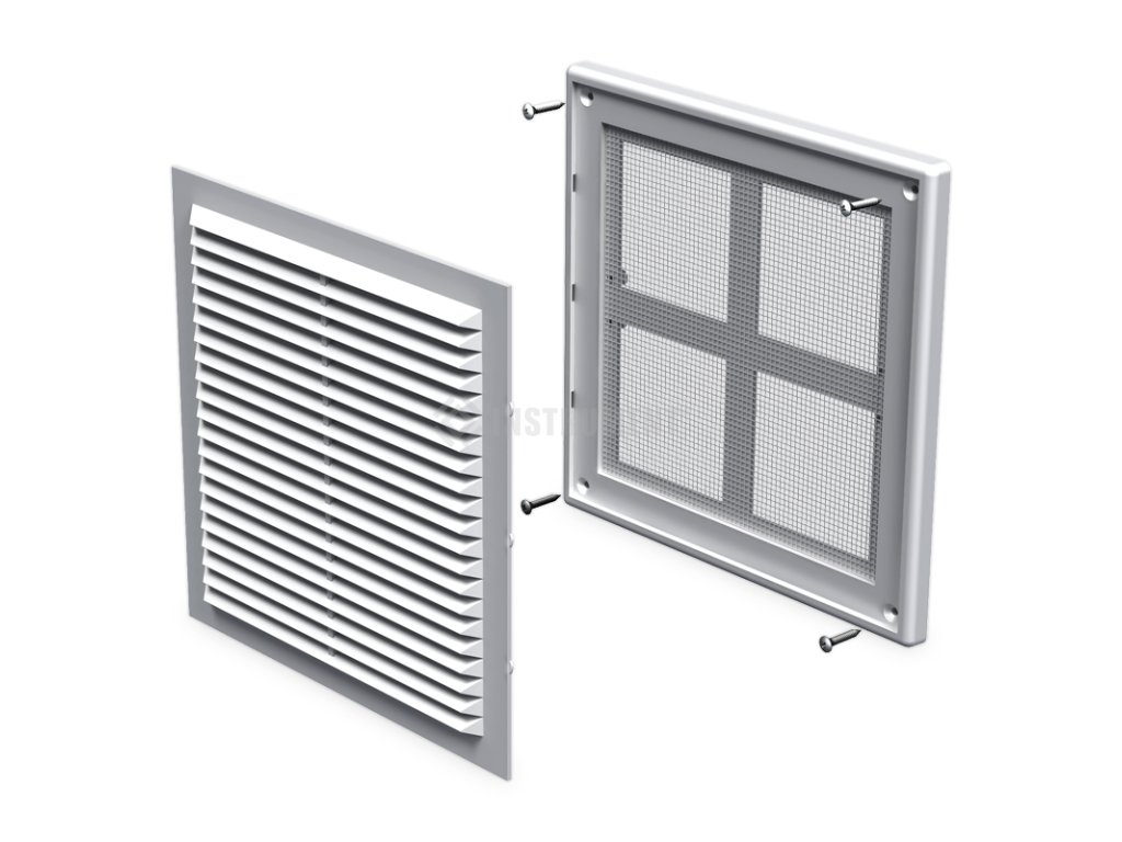 Štvorhranná plastová mriežka biela bez nadstavca, 204 x 204 mm.