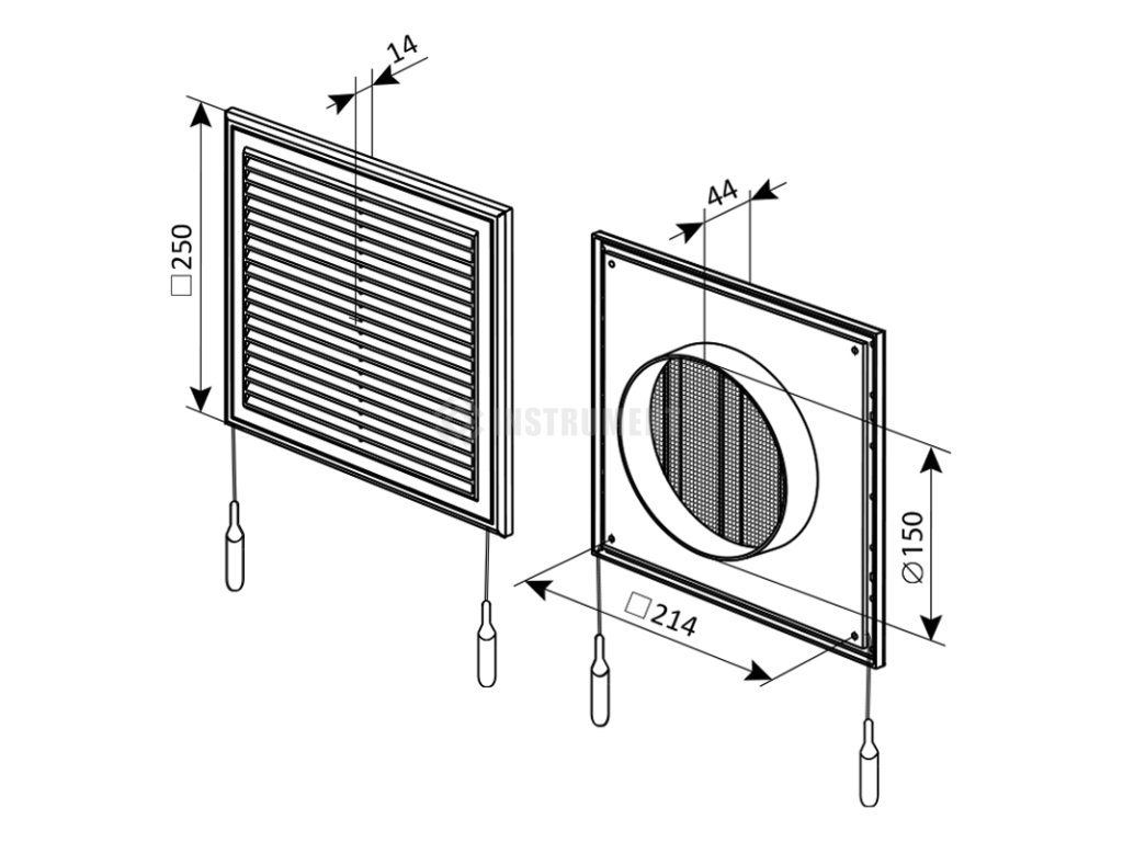 Mriežka vetracia MV 250/150VRs nadstavec+regulácia ventilačná
