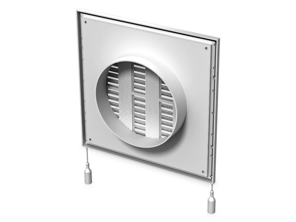 Štvorhranná plastová biela mriežka s nadstavcom Ø150 mm a reguláciou, 250 x 250 mm.