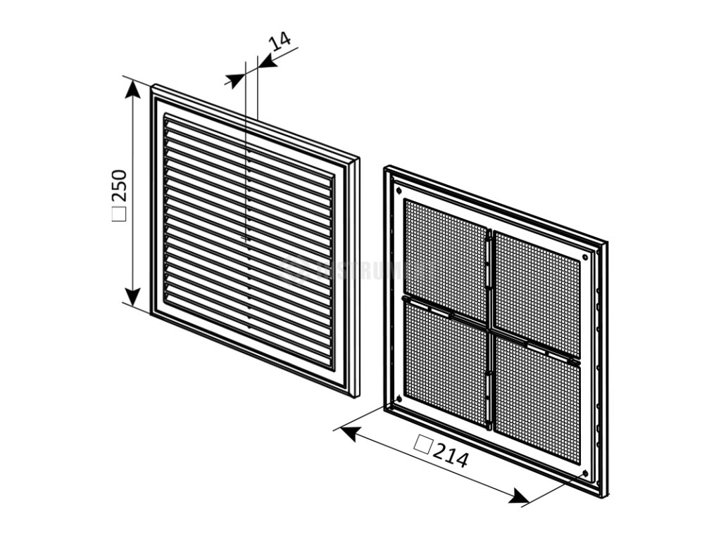 Štvorhranná plastová mriežka biela bez nadstavca, 250 x 250 mm.