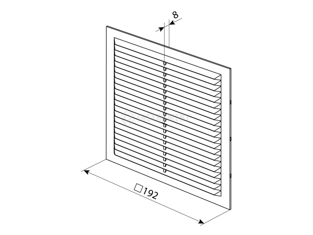 Štvorhranná nalepovacia plastová biela mriežka bez nadstavca, 192 x 192 mm.