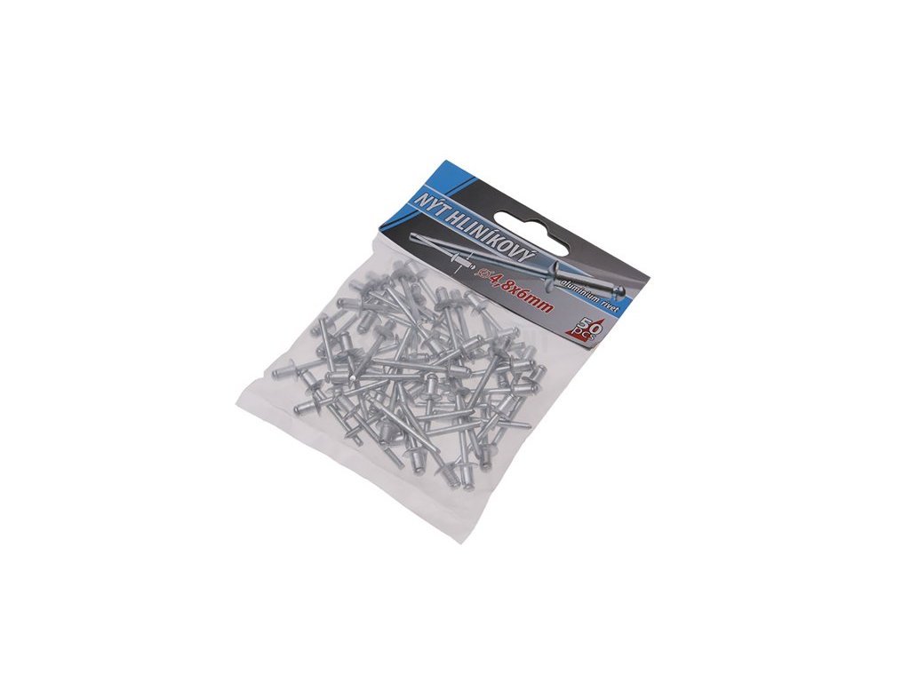 Klasické trhacie slepé hliníkové nity 4,8 x 6 mm v malom balení 50 kusov, vhodné pre malospotrebiteľov. Al 4,8mm x 6mm