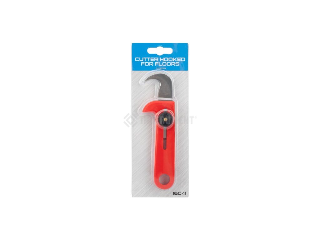 Plastový nôž s hákovou čepeľou, odolná skrutková aretácia, bezpečné uloženie ostrie v rukoväti noža, vhodný na podlahoviny, kožu, textílie.