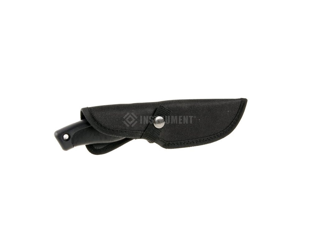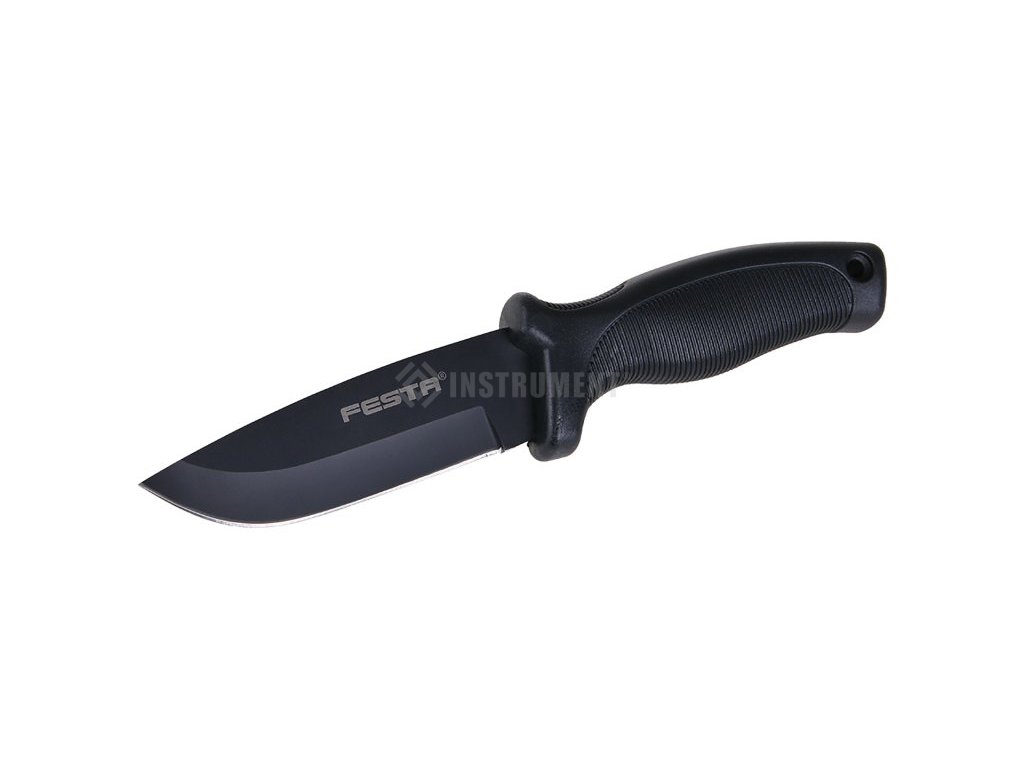 Nerezový lovecký nôž, teflónová povrchová úprava čepele, celková dĺžka 23 cm, ergonomická pogumovaná rukoväť. Nôž nie je zatvárací. Nylonové puzdro s pripnutím na opasok.