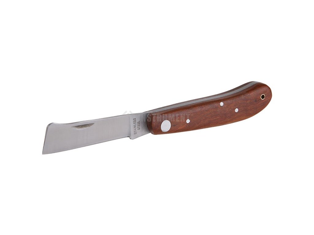 Očkovací zatvárací nôž, silná nerezová čepeľ, drevená rukoväť s kvalitným nitovaním, na očkovanie - rezanie drevín a rastlín, dĺžka čepele 110mm.