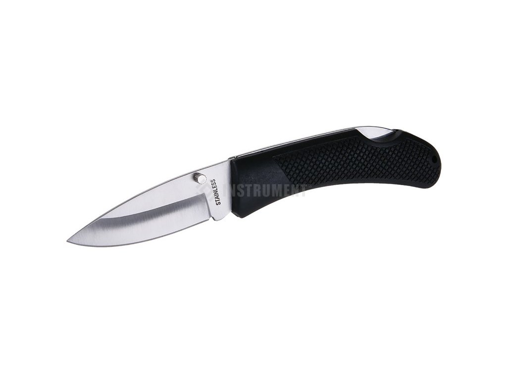 Vreckový zatvárací nôž s poistkou proti samovoľnému zatvoreniu čepele, plastová rukoväť, jednoručné otváranie, čepeľ z nerezovej ocele, kvalitné nitovanie, dĺžka čepele 120mm.
