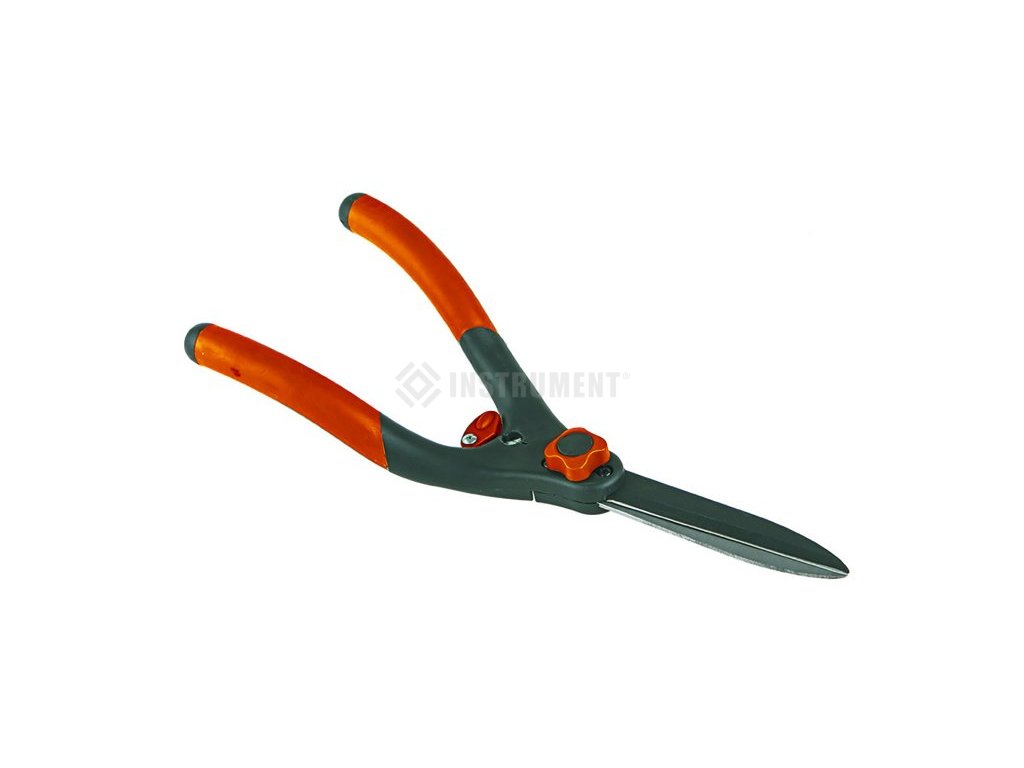 Kvalitné a vďaka použitým materiálom ľahkej nožnice na živé ploty a kríky, dĺžka 440 mm - čepele nožníc 160 mm, čepeľ opatrená teflónovou vrstvou - lepší strih a zaroveň ochrana, ergonomické rukoväte z kvalitného polypropylénu, v úchopovej časti pogumované, konštrukcia nožníc s vyosenými rukoväťami umožňuje ľahšiu prácu a lepšiu manipuláciu pri bočnom, hornom i strihu rôznych tvarov plotov aj kríkov, stredový nastaviteľný skrutku pre napätie čepeľou. Pre maximálny priemer 8 mm.