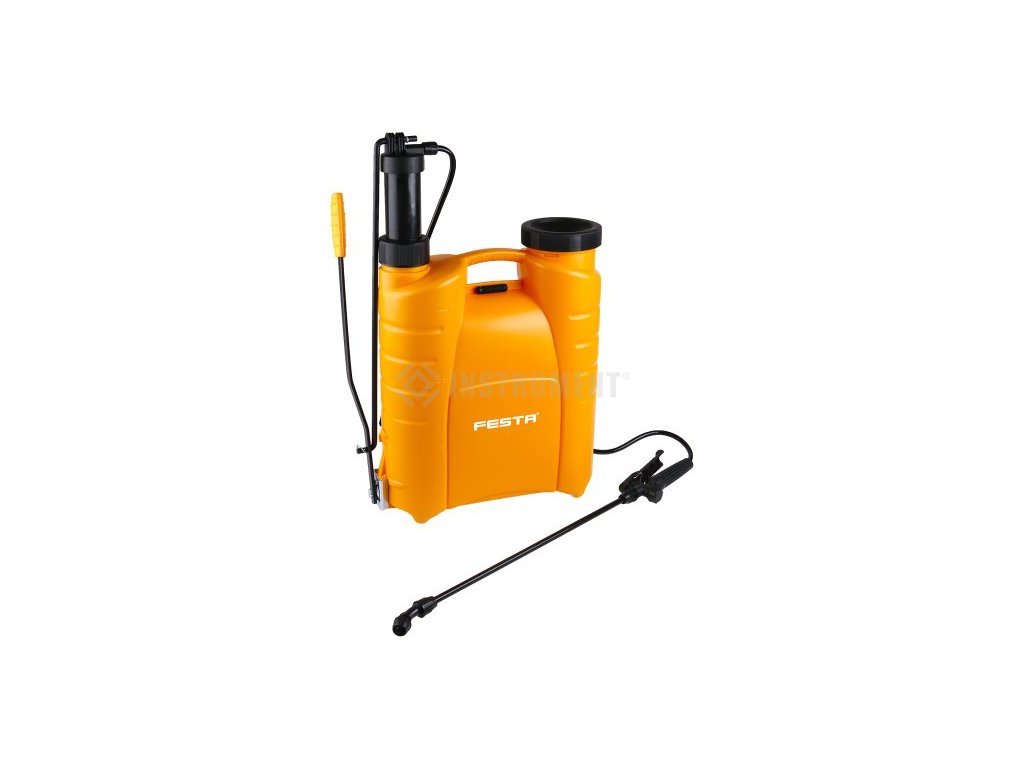 Tlakový postrekovač 12l s rozprašovačom na tyči. Je vyrobený z pevných plastov odolných proti UV žiareniu. Je vhodný pre ošetrovanie rastlín a rôzne dezinfekčné práce. Postřiková kvapalina sa v nádrži vyvolá pretlak piestovým čerpadlom. Pri práci sa postrekovač nesie v ruke - tlakovací páka je zachytená vo veku - alebo na popruhu cez chrbát. Spustenie postreku sa ovláda ventilom v rukoväti. Široký nalievací otvor uľahčuje nalievanie postreku, ale aj čistenie postrekovače po použití. Poistka proti samovoľnému zdvihnutie piestu poistný ventil proti pretlakovania.