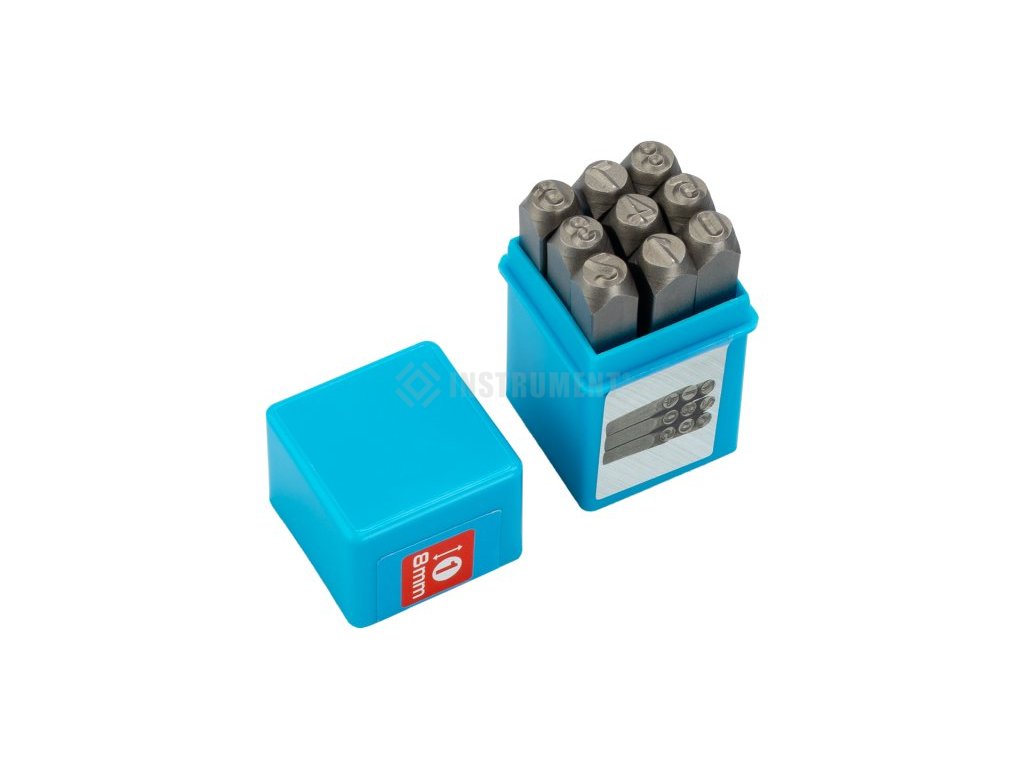 Ručné raznice čísiel 8mm. Oceľ štandardnej kvality, pevnosť do 800 N / mm2. Typy znakov podľa DIN 1451.