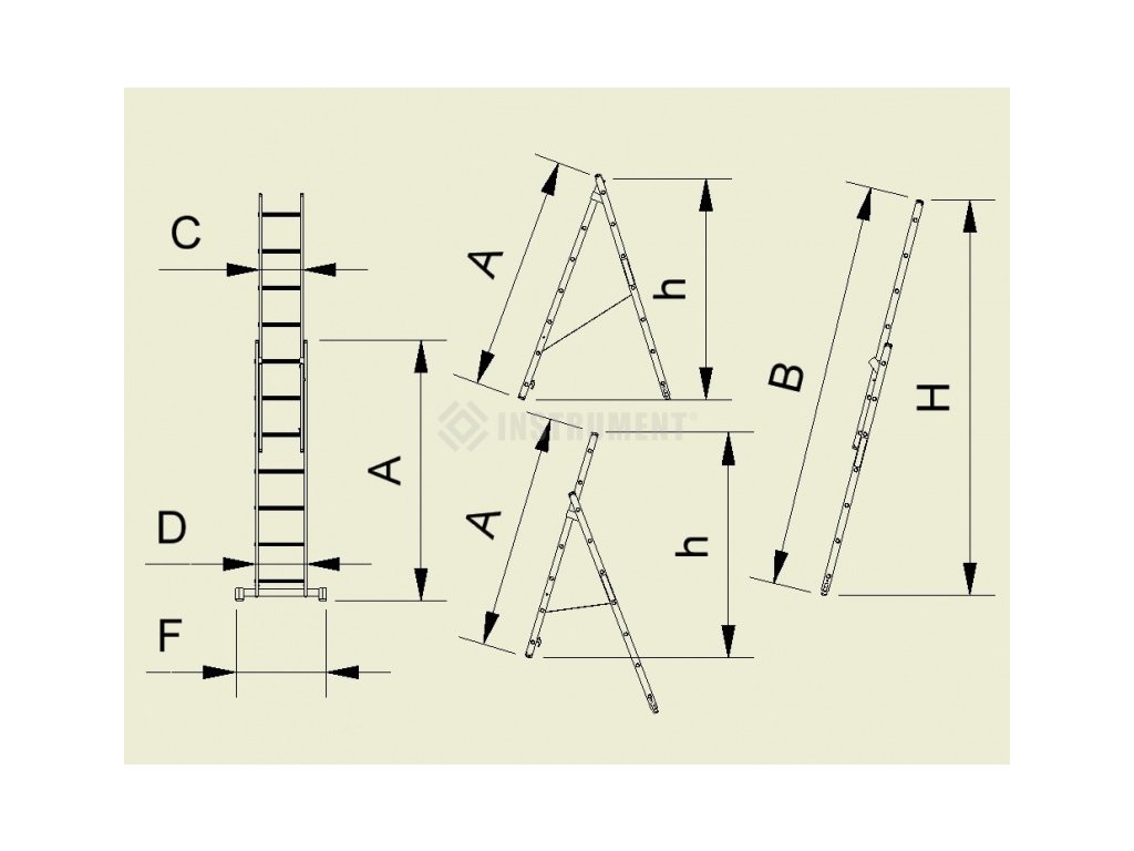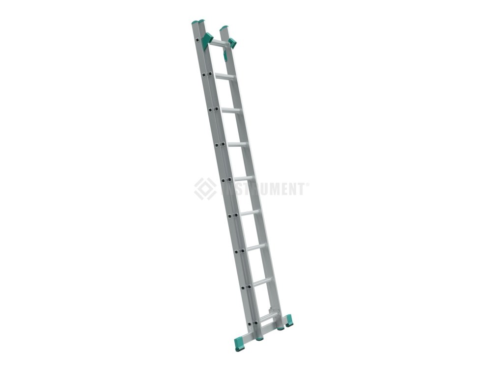 Dvojdielny univerzálny rebrík s úpravou na schody Eurostyl, počet priečok 2 x 9, max. výsuvná dĺžka 4,28 m a šírka 397 mm. Rebrík možno použiť ako výsuvný rebrík alebo ako štafle. S rebríkom sa dá pracovať aj na schodisku.