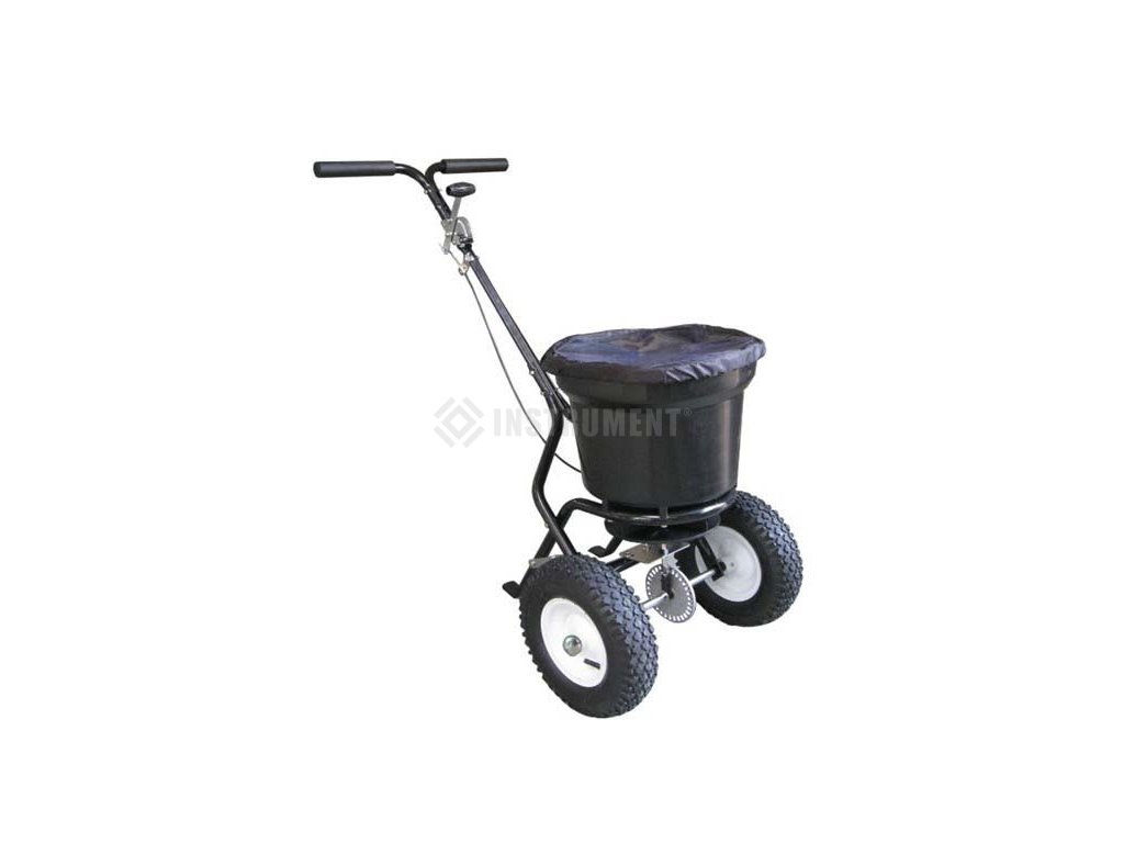 Objem plastového zásobníka 23 litrov, vhodný pre rozptyl trávneho semena, hnojív a posypovej soli, ručné ovládanie, nafukovacie kolesá, hmotnosť 11 kg, dodávané v rozloženom stave, rozmery balenia 63*39*39cm