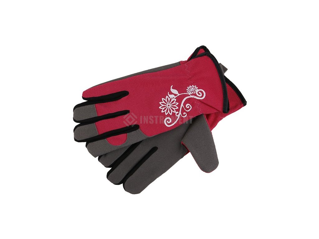 Rukavice špeciálne vyvinuté pre záhradné práce z umelého semišu v dlani, chrbát rukavice je z elastickej tkaniny Spandex, so sťahovacou gumičkou na zápästie, ozdobný potlač. Veľkosť 9.