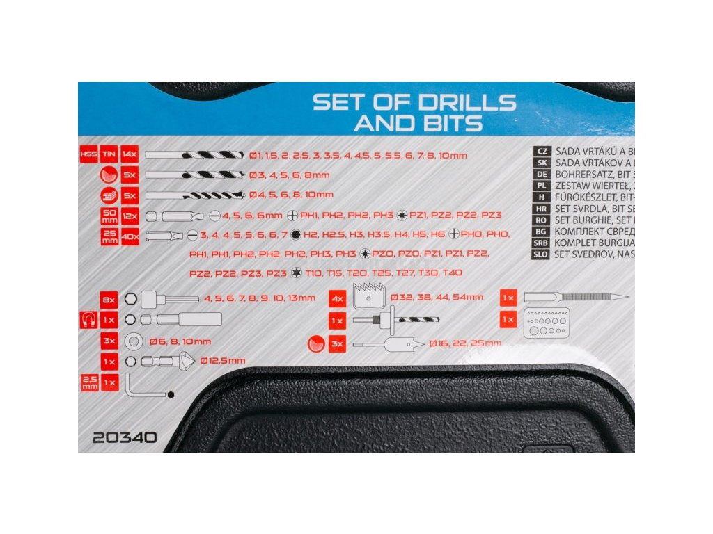praktická univerzálna sada vrtákov, bitov, adaptérov a vykružovákov 100 kusov