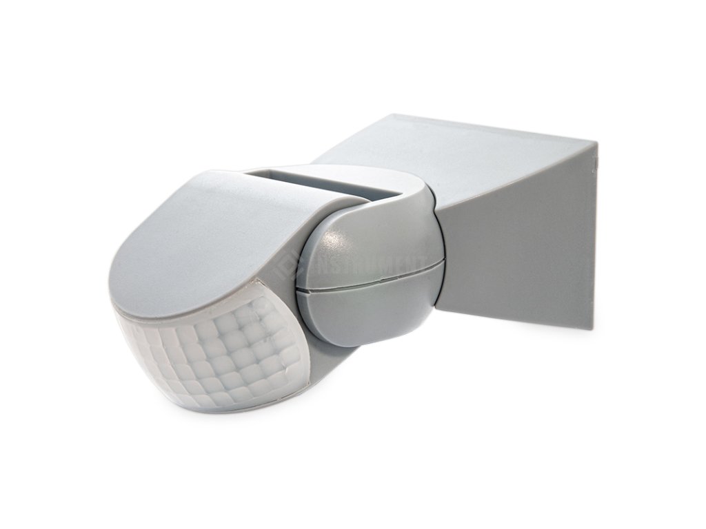 Infračervený pohybový senzor (PIR) na stenu, 180°, 230V, 5A, IP65 sivý