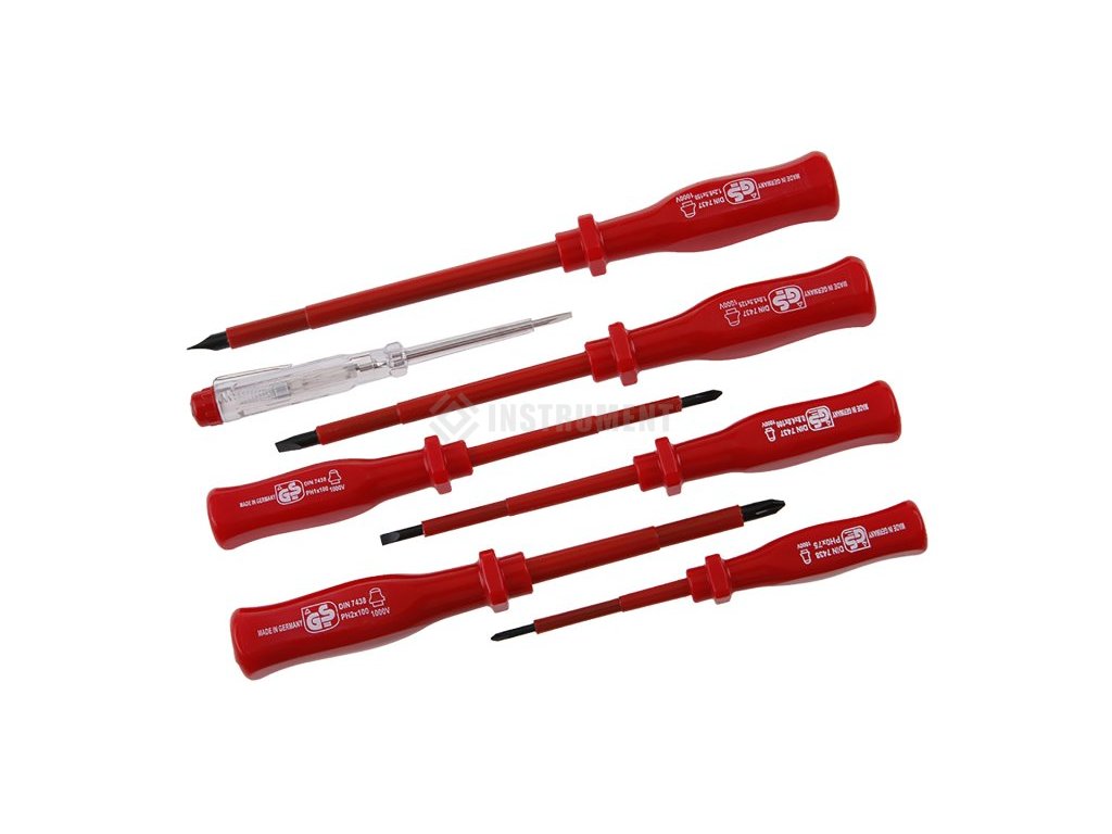 Sada najpoužívanejších typov, skrutkovače majú certifikáciu elektro VDE 1000V, IEC / EN 60900-2004, kovový driek je vyrobený z veľmi kvalitnej chromvanadiové ocele, kalený hrot je magnetický, kombinácia polypropylénu a gumy na ergonomicky tvarované rukoväte zaručuje výborné antišmykové vlastnosti a dobrú odolnosť voči mazadlám a chemikáliám, Sada obsahuje najpoužívanejšie druhy hrotov.