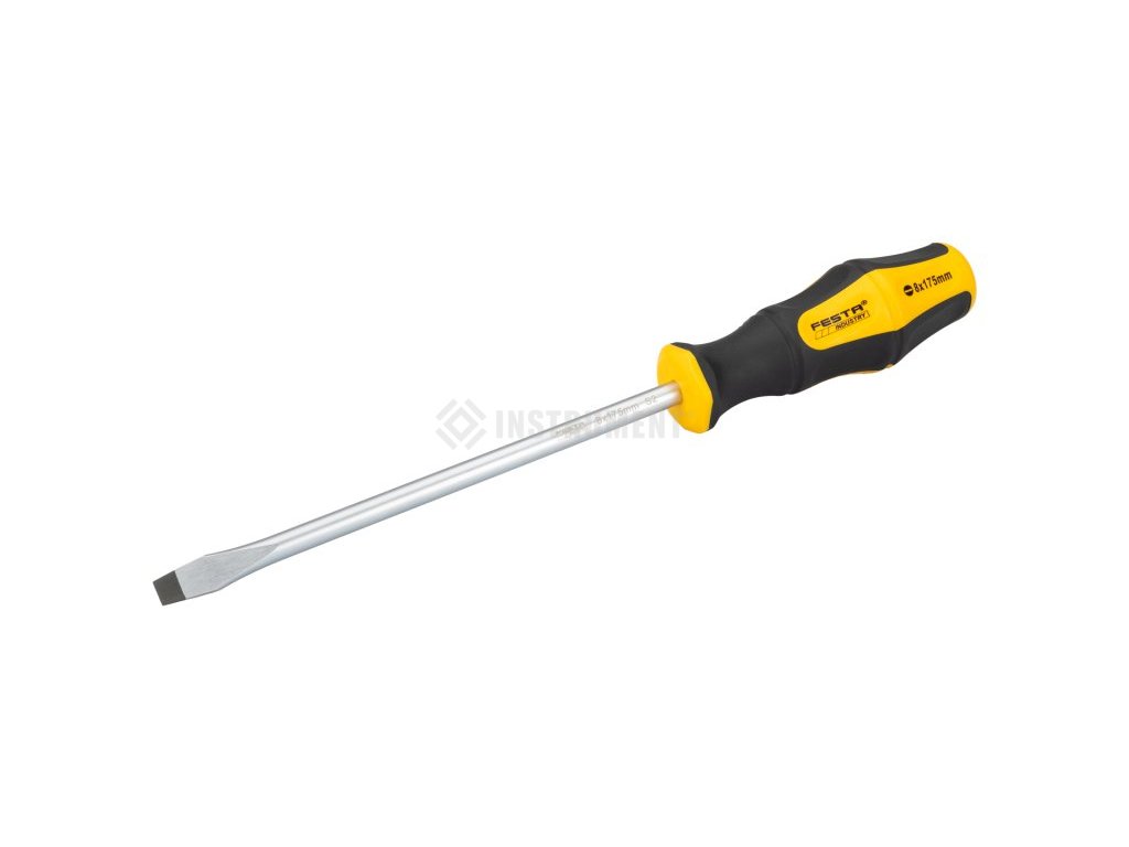 Vysoko kvalitný skrutkovač z S2 ocele s magnetickým zakončením. Ergonomická dvojkomponentná mäkčená rukoväť z TPR gumy. Otvor pre páku.
