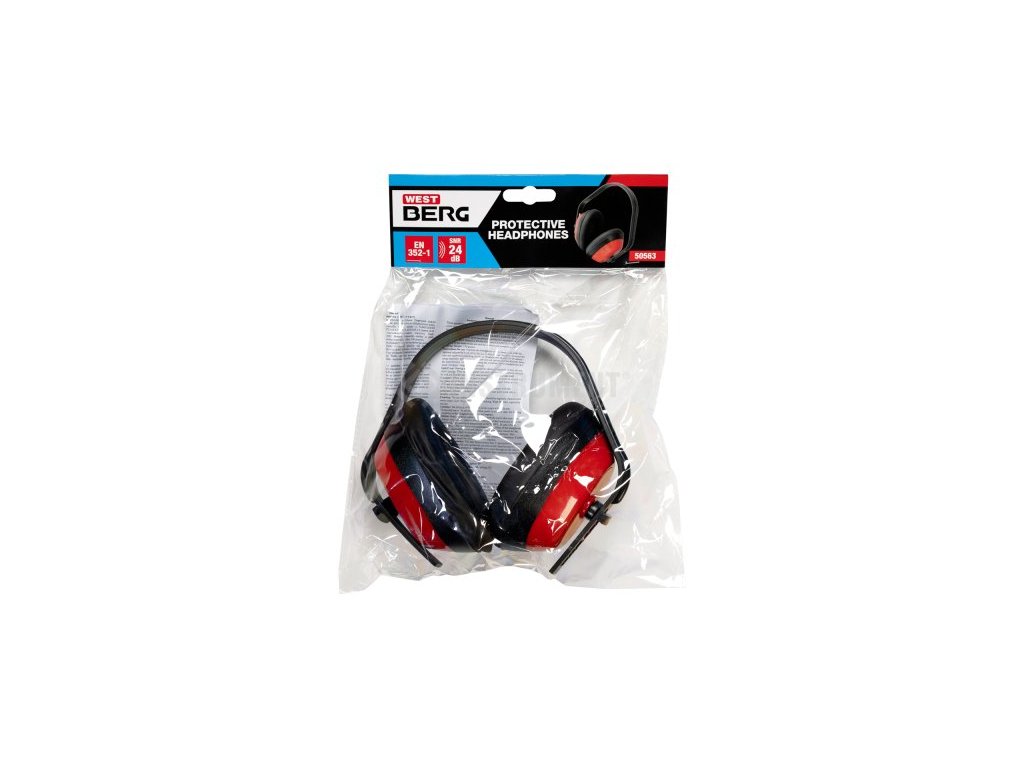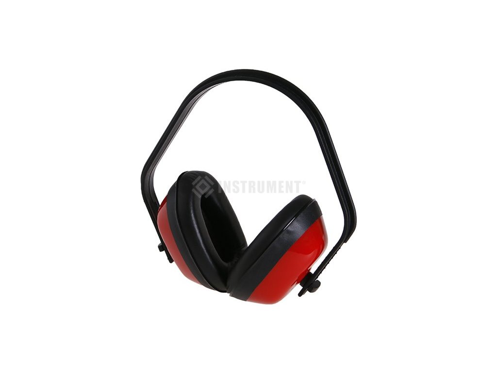 Červené ochranné slúchadlá z ABS materiálu, PVC vankúšiky, možnosť nastavenia dĺžky, 27 dB, CE EN 352-1.