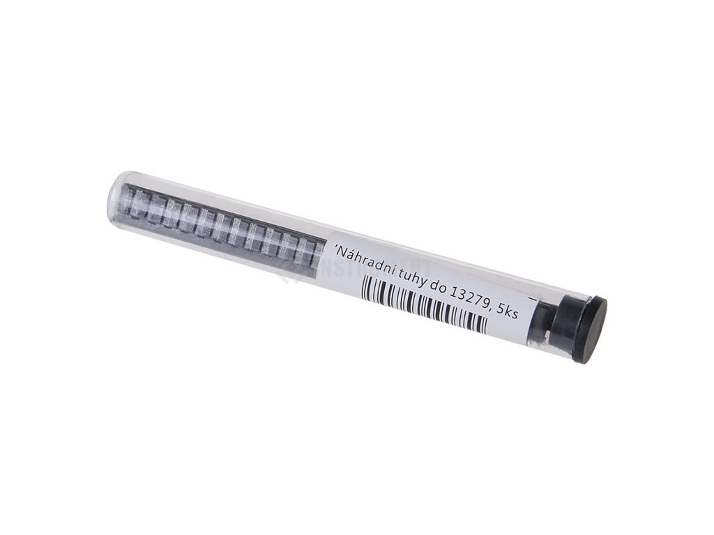 Náhradné tuhy do tesárskej ceruzky kód 13279 s vysúvacou plochou tuhou. Jednoduchým stlačením si tuhu pri opotrebení vysuniete alebo nahradíte novú. Tuha je delená na segmenty s dĺžkou cca 5 mm, ktoré sa po otupení odlomí a je opäť ostrý hrot. Klasická tvrdosť tuhy - HB.