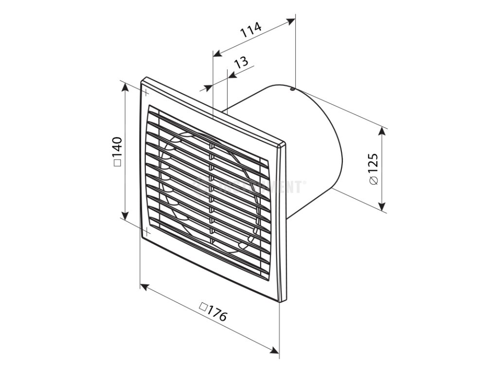 Domový axiálny ventilátor, Ø 125 mm, ťahový vypínač.