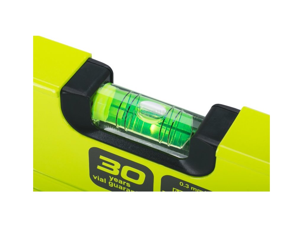 PRESNOSŤ 0,3mm / M = 0,017 ° ( V ZÁKLADNEJ POLOHE ), zosilnený ALU profil 2,2mm, frézovaná základňa, kvapalina v libelách UV stabilizovaná a fluorescenčná, optická horizontálna libela - ľahké a presnejšie meranie, dvojité krúžky v libele umožňujú nastaviť sklon 2 %, vodováha je odolná proti prevádzkovým nárazom, KAŽDÝ KUS elektronicky testovaný.