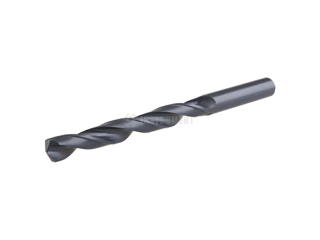 Výkonný vrták HSS na kov spĺňa normu DIN 338, RN, vrták je vyrobený z vysoko kvalitnej rýchloreznej ocele (HSS), oceľ je zušľachtená legúr - Wolfram 4%, Molybdén 2%, Chróm 4%, Vanadium 1% - na vŕtanie ocelí do 900 N / mm². Presné vyrobená skrutkovica pre maximálny výkon, presnosť a dobré centrovanie, vybrúsenie uhla špičky vrtáka 135 °, určené pre priemyselné použitie.