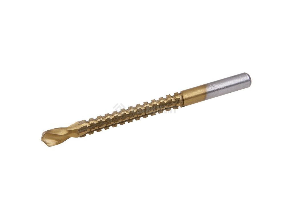 Frézovacie vrták HSS s TiN ochrannou vrstvou proti oteru, priemer 6 mm. Používa sa pre rozfrézování vyvŕtaného otvoru do potrebného tvaru v plastu alebo dreve.