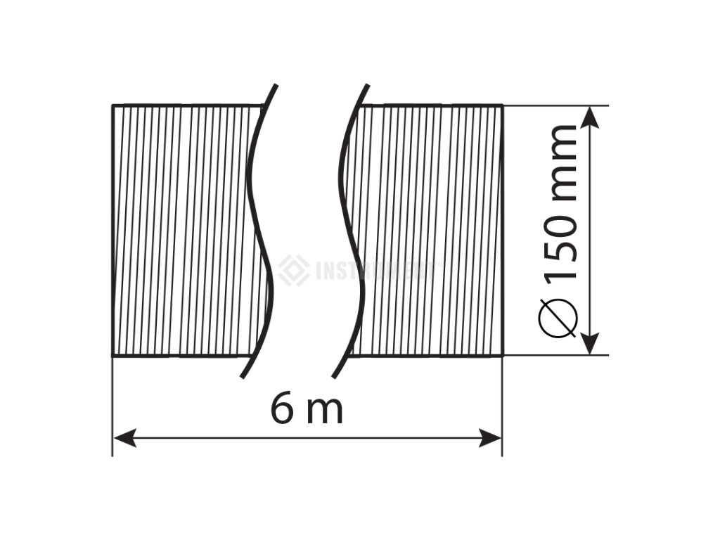 Ohybné hliníkové potrubie, hrúbka steny 100 μm. t:-30÷250°C, priemer 150mm, dĺžka v roztiahnutom stave 6m.