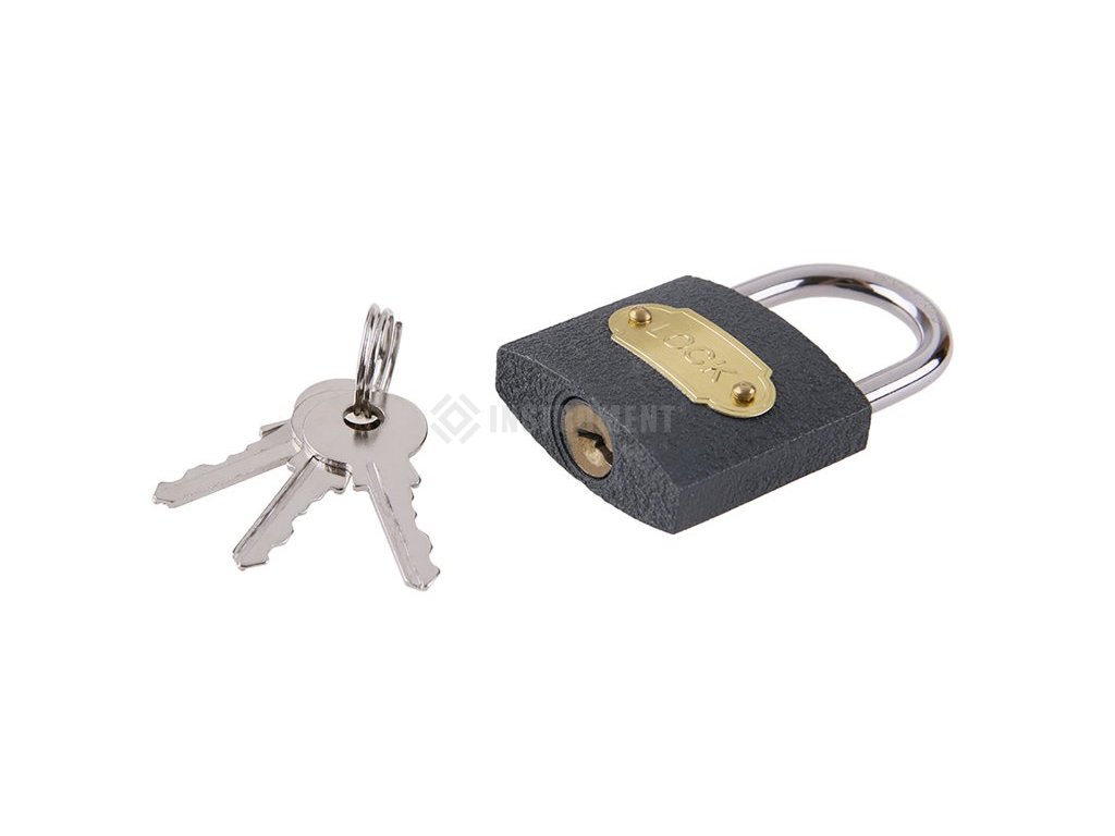 Oceľové tvrdené telo zámku 40mm. Oblúk z tvrdenej ocele pre lepšiu odolnosti proti prerezaniu. Kľúče 3ks.