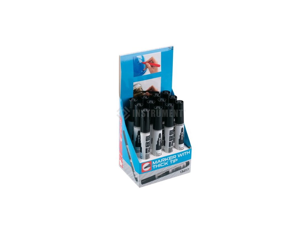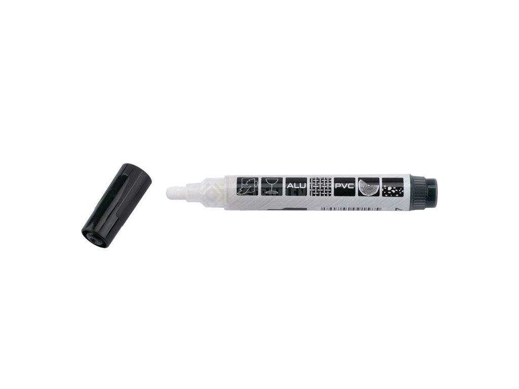 Špeciálny značkovač - fix s hrubým hrotom 4 - 6,5 mm - čierny, popisy železných konštrukcií, skla, plastov, čiernych strečových fólií atď .. K prefarbenie hrotu je potreba značkovač pretrepať - guľôčky vnútri premieša farbu a stlačením hrotu dovnútra dôjde k nasatie farby a značkovač - fix je pripravený na použitie.