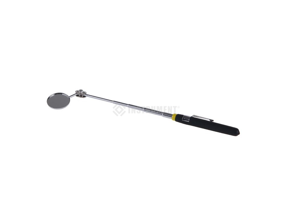 Teleskopické inšpekčné zrkadlo s kĺbom. Zrkadlo umiestnené na kĺbe. Priemer zrkadla: 30 mm. Dĺžka zatvorená / otvorená: 160/610 mm. Pogumovaná rukoväť so systémom uchytenia na odev.